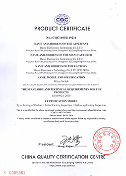 基本型微動(dòng)開(kāi)關(guān)CQC證書