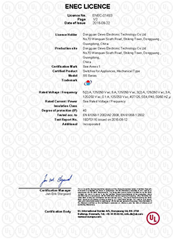 基本型微動(dòng)開(kāi)關(guān)ENEC證書