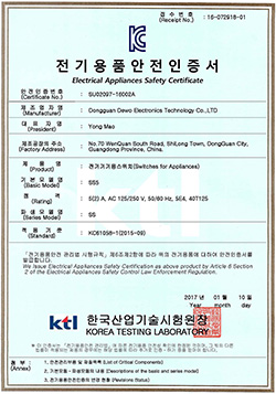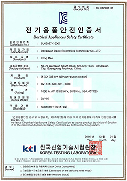 基本型微動(dòng)開(kāi)關(guān)KC證書