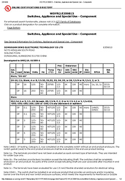 基本型微動(dòng)開(kāi)關(guān)CB證書