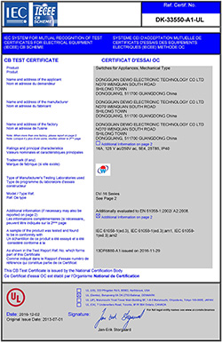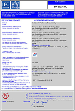 一般型微動(dòng)開(kāi)關(guān)CB證書