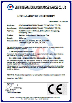 基本型微動(dòng)開(kāi)關(guān)CE證書