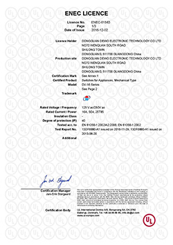 基本型微動(dòng)開(kāi)關(guān)ENEC證書